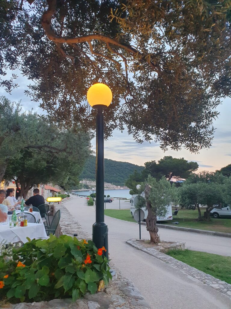 Auch am zweiten Reisetag haben wir uns eine längere Strecke vorgenommen. Am Ende waren es knapp 500 km bis etwas nördlich von Dubrovnik. Nachdem wir die ersten 100 km auf kleineren Straßen zurück gelegt hatten, kam uns eine gut ausgebaute Autobahn bis hinter Split gerade recht. Trotz heftiger Regenfälle kamen wir gut voran und erreichten unseren Campingplatz „Prapratno“ in der Nähe der Stadt Ston. Ein absolut sympathischer kleiner Platz, malerisch in einer Bucht gelegen und wir hatten das Meer direkt vor der Autotür. Mit einem leckeren Essen wurden wir auch an diesem Tag für die lange Zeit auf der Straße belohnt.